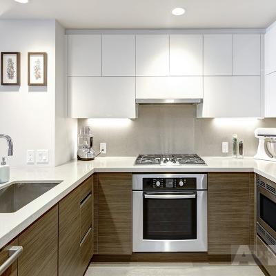 In order for kitchen cabinets to best create a strong sense of contrast and separation of layers, wall cabinets and floor cabinets use a variety of colors. The largest contemporary kitchen cabinets and dining rooms feature baffle designs that elevate the level of space, while a beautiful decorative topline completes the panel shape. One of the styles of modern kitchen cabinets is the use of two-tone door panels and various design modifications, reflecting the rich features of European products. To further emphasize the modern style, metal strips are inserted into the door panels.